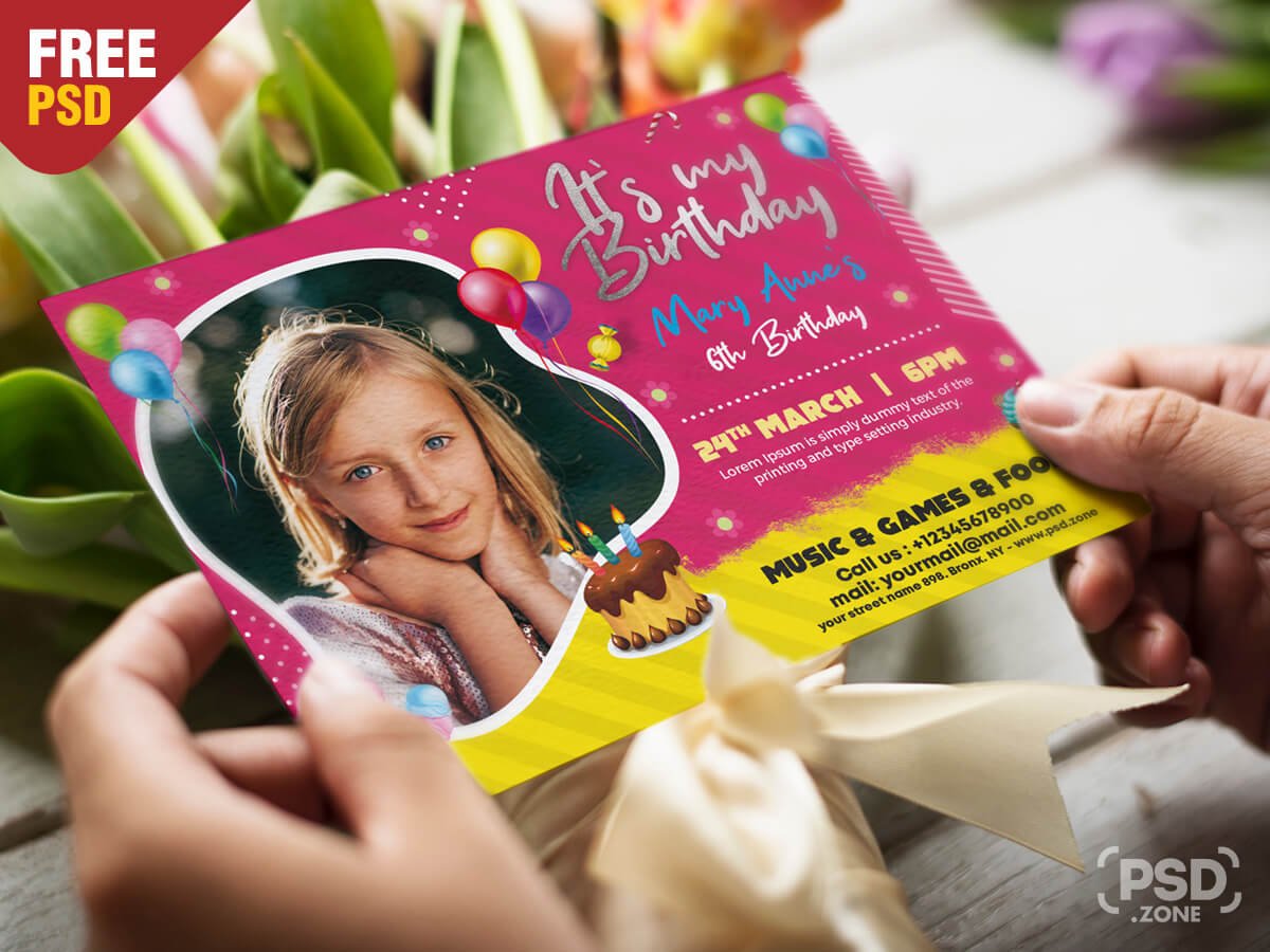 so Download this 5×7 Birthday Invitation Card PSD and its a available for free download.