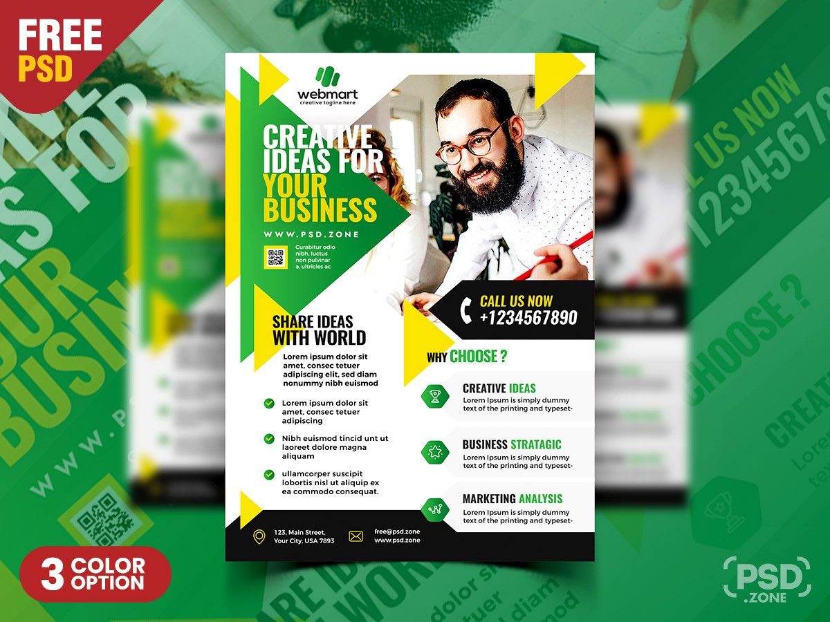 I’m happy to share Free Modern Corporate Flyer Design Template PSD. This Modern Corporate Flyer Design Template PSD is perfect for Small Business, Big Business and Corporate Business or Creative Agency Advertisement. Insert your own brands, Logo, images, and text using Adobe Photoshop. You can use it for business listings, newspaper advertising, poster and full page magazine ads. Freebie Included with 3 different color options. It is Very easy to use and customize. It is A4 size print ready and available in CMYK colors with 300 DPI PSD files. Very easy to change text, colors, and to add or remove items.