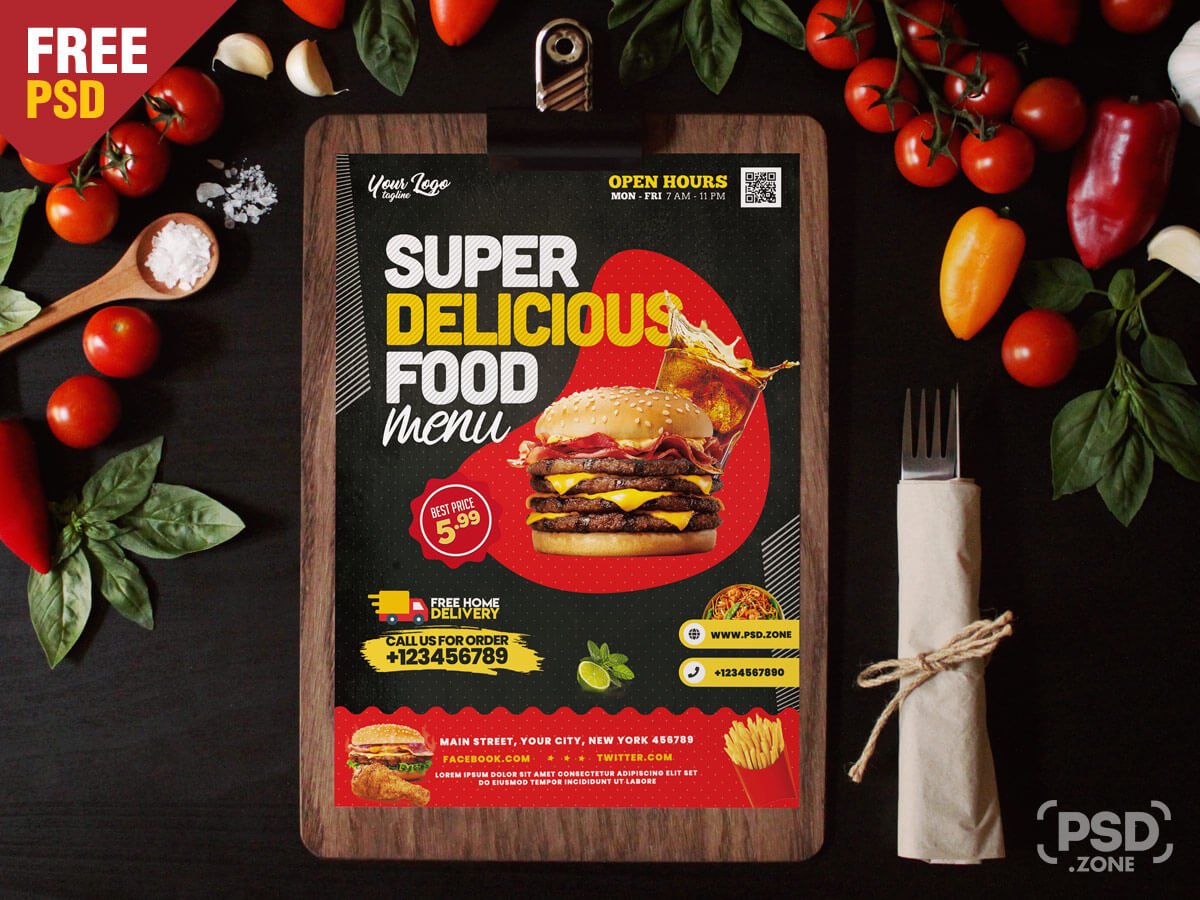 Hello everyone. This is a Free Restaurant Food Menu Design PSD Template. This Restaurant Food Menu Design PSD Template is perfect for any types of restaurant, cafe, fast food, steak house, Catering, Grill bar and many more. This Restaurant Food Menu Design PSD Template is super simple to edit and customize with your own details using Adobe Photoshop. Simply add your food images and text. This template download contains a a4 size, 300 dpi print-ready CMYK 2 psd files (Front and Back).