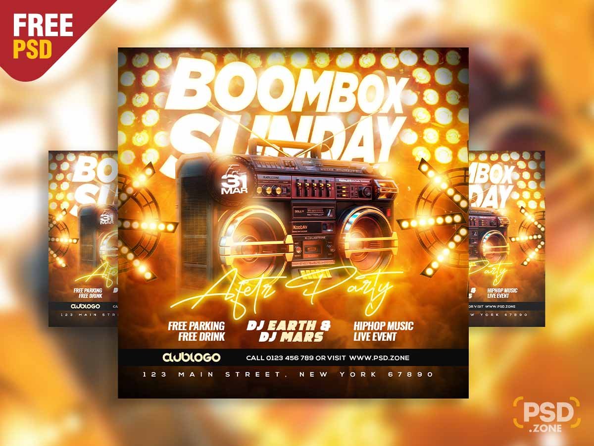 so Download this Boombox sunday after party social media post PSD and its available for Free to Download.